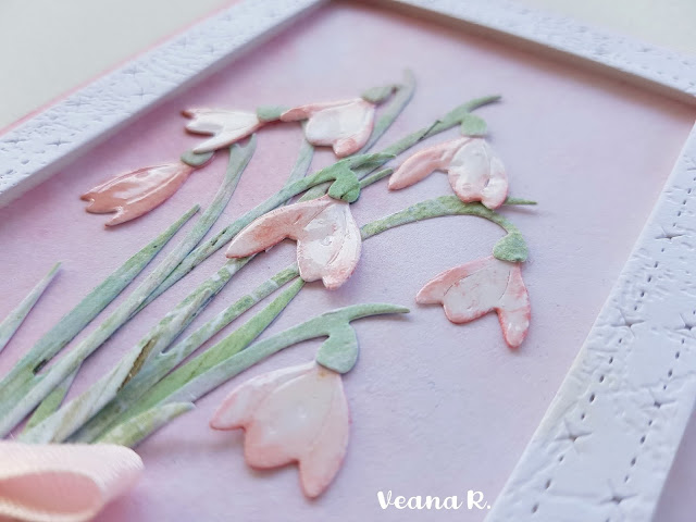 Na cvetove zvončkov sem nanesla Finnabair barvo Boudoir Pink in še Glossy Accents ter dodala roza pentljo .